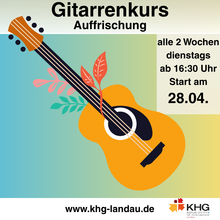 Zwei-wöchig dienstags im Sommersemester: Ab dem 28. April 2026 startet der Gitarrenkurs zur Auffrischung.